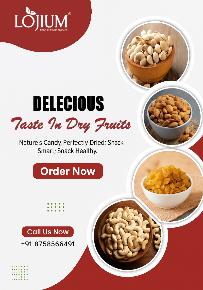 Established in 2018 and headquartered in Surat, Gujarat, Lojium Foods is a trusted name in the dry fruit trading industry. We specialize in sourcing, supplying, and delivering premium-quality dry fruits to retailers, wholesalers, and food businesses across India. With a strong commitment to purity, freshness, and customer satisfaction, Lojium Foods has steadily built a reputation for excellence in both product and service.